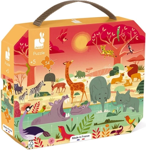 Stylové puzzle JANOD s ilustrací africké savany přináší dětem hodiny zábavy a učení. Díky praktickému kufříku se snadno přenáší a ukládá, takže je skvělé na doma i na dovolenou. Součástí je i plakátová předloha, která pomůže dětem s orientací při skládání.