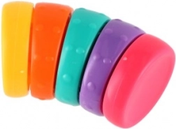 Představujeme duhový protistresový kroužek - malou věž se 5 křivými barevnými kruhy, které do sebe dokonale zapadají. Každý kruh má rozmanité textury a tvary, které navíc umožňují jemnou motoriku a podporují kreativitu.