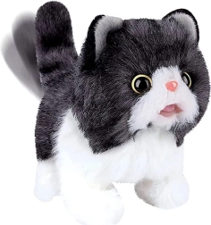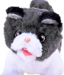 Interaktivní kocourek je vyroben z měkkého plyšového materiálu s plastovými očima a nosíkem, což mu dodává skutečný realistický vzhled.