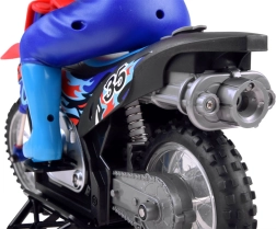 Nalijte vodu do nádržky a při jízdě se z výfuku objeví efekt kouře a blikající zelené světlo – zábava jako na skutečném motokrosu.