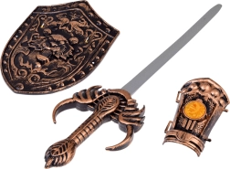 Meč o délce 50 cm a štít o rozměrech 29 x 20 cm umožňují dětem bezpečně bojovat proti imaginárním nepřátelům, chránit se a prožívat bojové situace jako opravdoví rytíři.
