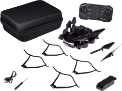 Intuitivní dálkový ovladač na frekvenci 2,4 GHz ovládá let všemi směry, rotaci i rychlost. Dron zvládá 360° flipy, svižné obraty a přesné zastavení. V balení najdete také ochranné oblouky rotorů, náhradní vrtulky a přepravní kufřík pro bezpečné uložení a transport.