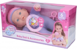Roztomilé miminko o velikosti 31 cm potěší každého malého pečovatele. Má měkké tělíčko, reaguje na stlačení bříška a nabídne 6 zvukových efektů. V balení najdete lahvičku a dudlík a hned po rozbalení je připravené k hraní díky bateriím v balení.