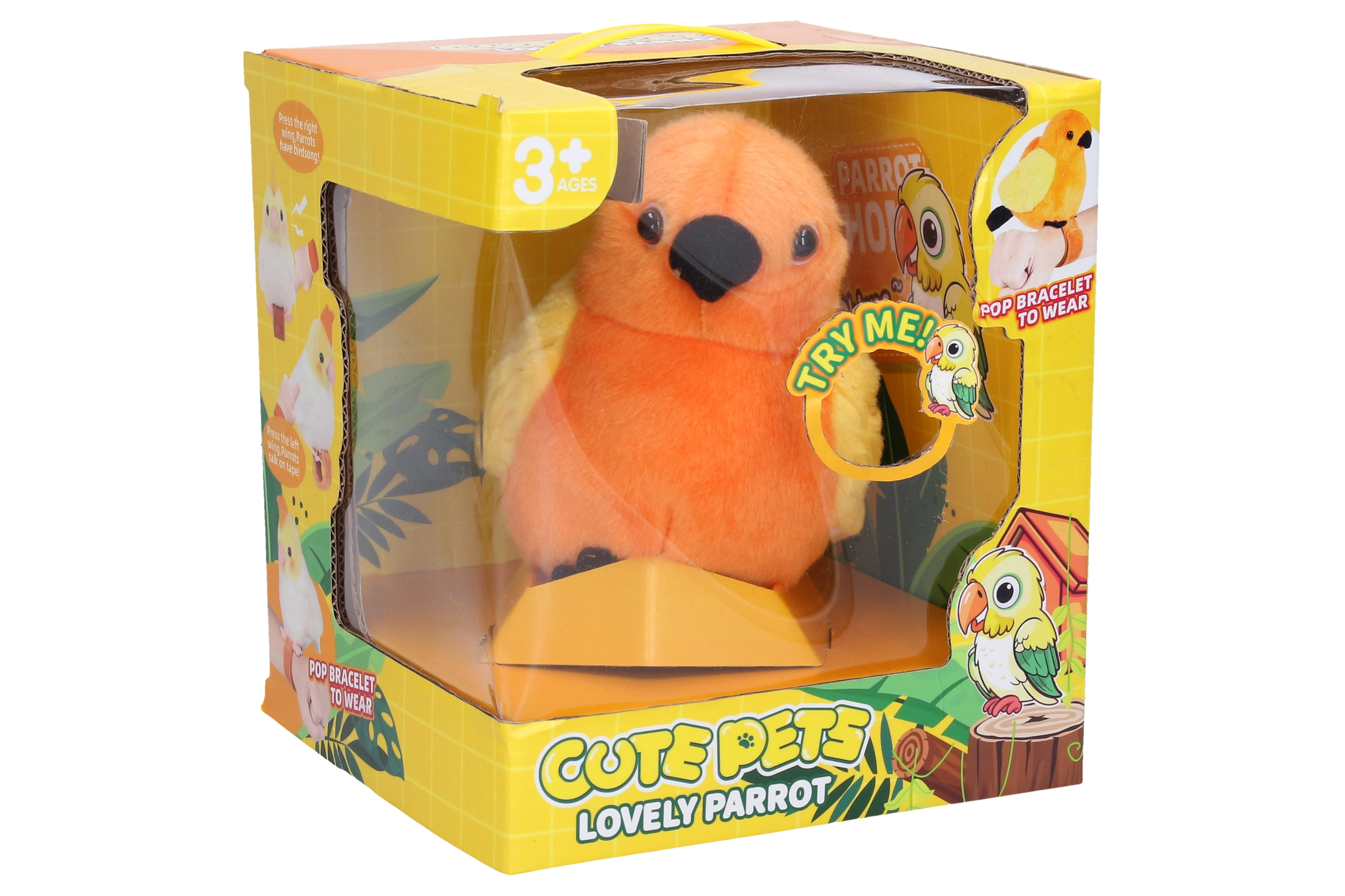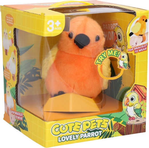 Zábavný interaktivní ptáček, který sedí na ruce a opakují vaše slova. Nabízí zvukové efekty, jednoduché ovládání pomocí tlačítek na křídlech a je ideální pro děti od 3 let. Součástí jsou baterie 3× AG13.