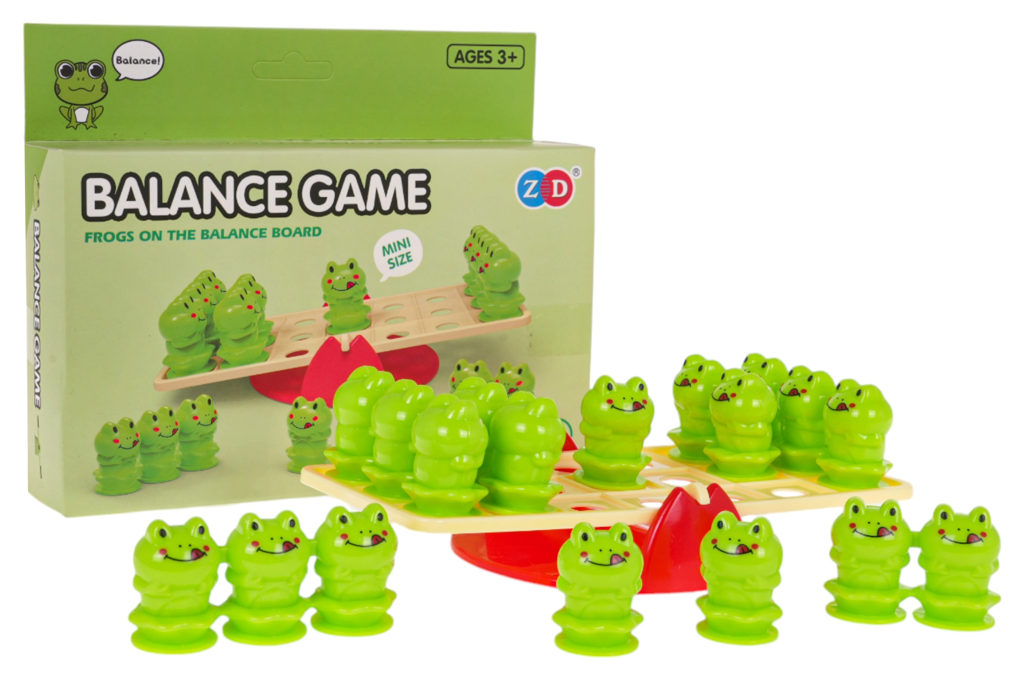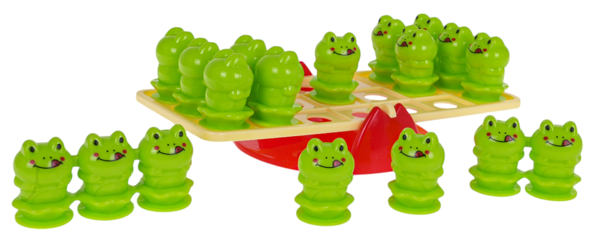 Tato chytrá balanční hra přináší dětem dlouhé hodiny smysluplné zábavy. Úkolem je pokládat žabičky na obě strany základny tak, aby se udržela rovnováha. Děti přirozeně pochopí principy sčítání a odčítání i jednoduché fyzikální souvislosti.