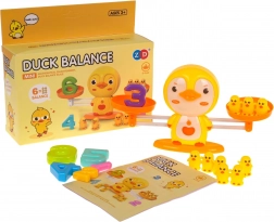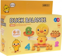 Tato chytrá hra spojuje učení s hrou. Děti pokládají na jednu misku vah číslice a na druhou odpovídající počet kachniček tak, aby váha zůstala v rovnováze. Přirozeně tak chápou princip sčítání a odčítání, porovnávání hmotností i fungování dvouramenné váhy.