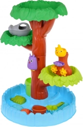 Přelijte vodu do horních pater stromu a sledujte, jak stéká po jednotlivých úrovních, roztáčí ozubená kolečka a končí ve spodní nádrži. Díky jasným barvám a chytrému designu děti přirozeně rozvíjejí jemnou motoriku, logiku i představivost – ať už si hrají doma na zahradě, nebo na pláži.