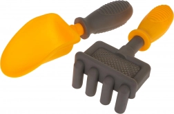 V sadě naleznete také hrabičky a lopatku. Tyto nástroje dětem umožňují kreativní hru a rozvíjení jejich stavebních dovedností na písku či ve štěrku.
