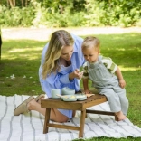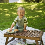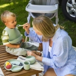 Zvýšené okraje a přísavky na spodku zajistí, že jídelní set pevně drží na stole. Přizpůsobená velikost příborů je ideální pro malé ručky, které se učí jíst samy.