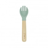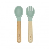 Příbory s dřevěnými rukojeťmi a silikonovým zakončením jsou vhodné pro malé dětské ruce a umožňují snadné a bezpečné použití.