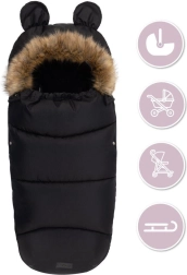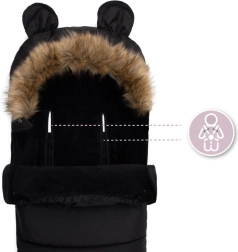 Hřejivý zimní fusak MoMi Cozy v elegantní černé barvě udrží vaše miminko v teple a bezpečí i v mrazivém počasí. Díky vodoodpudivému povrchu a podšívce z měkké kožíškové látky poskytuje výbornou tepelnou izolaci, ochranu před větrem, deštěm a sněhem a maximální pohodlí při procházkách. Univerzální otvory na popruhy umožní rychlou instalaci do kočárku, autosedačky či na sáně, zatímco roztomilá kapuce s oušky dodá fusaku styl a hravost.