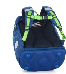 Ergonomie je na prvním místě: anatomicky tvarovaný zádový panel (délka 33 cm), polstrované ramenní popruhy a nastavitelný hrudní popruh podporují správné držení těla. Pevné dno s plastovými nožkami zabraňuje převržení, reflexní prvky zvyšují bezpečnost při chůzi do školy i domů. Díky vyměnitelným plackám na suchý zip si děti snadno doladí vzhled batohu.