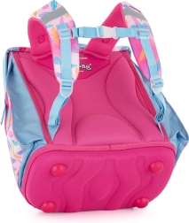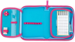 Součástí setu je také odolný vak se stahovacími šňůrkami na tělocvik či volnočasové aktivity a jednopatrový penál se dvěma chlopněmi, gumovými poutky a průhlednou fólií pro rozvrh hodin. Design s kolibříky v růžovo-modrých tónech sladí celý set do atraktivního celku.