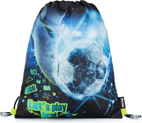 Lehký a odolný sáček na přezůvky či cvičky s fotbalovým motivem je skvělou volbou do školy i na kroužky. Uzavírání na šňůrky umožní rychlé sbalení věcí a díky popruhům lze vak snadno nosit na zádech nebo připnout k batohu.