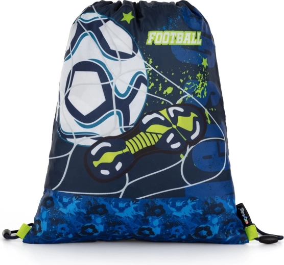Praktický sáček na cvičky a přezůvky do školy s fotbalovým motivem. Snadné uzavírání stažením šňůrek, lze nosit na zádech jako batůžek nebo připevnit ke školnímu batohu. Vyroben z lehké a odolné 100% polyesterové tkaniny.