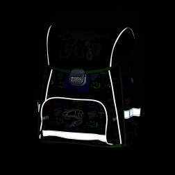 Tato školní aktovka s motivem dinosaura spojuje atraktivní design a promyšlenou ergonomii. Díky anatomicky tvarovaným zádům a prodyšnému polstrování pohodlně sedí na zádech a pomáhá správnému držení těla. Široké měkčené popruhy rozkládají zátěž rovnoměrně, takže je vhodná pro malé školáky v 1.–2. třídě.