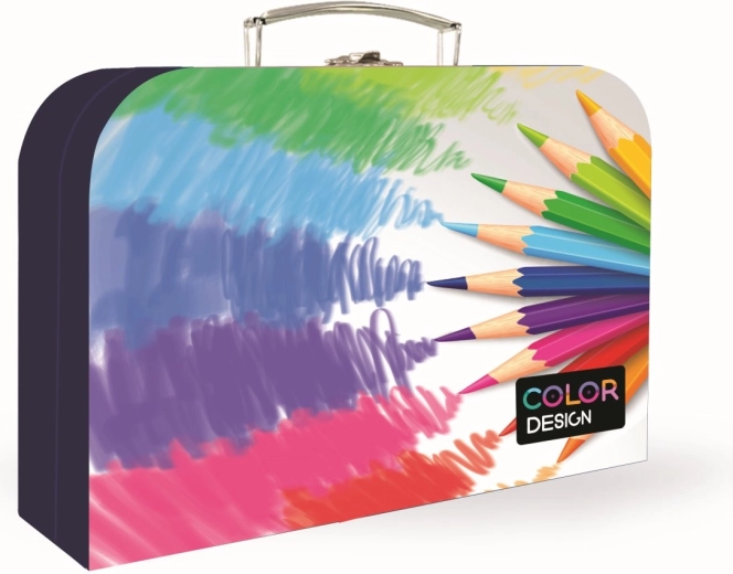 Praktický lamino kufřík s motivem pastelek pro školu i volný čas, ideální na výtvarné potřeby a sešity ve formátu A4. Odolný laminovaný povrch, bezpečné kovové zavírání a pevné kovové nýty zajistí dlouhou životnost. Kompaktní rozměr 340 × 230 × 100 mm a příjemná hmotnost 0,495 kg pro snadné přenášení.