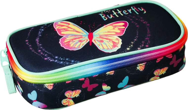 Stylové a praktické školní pouzdro OXY Style Mini Motýl, ideální pro žáky na 2. stupni a starší studenty. Pevné zipy a odolná kapsa zajišťují bezpečné uložení vašich psacích potřeb.