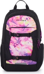 Vnitřní organizér s karabinou, polstrovaná kapsa na notebook a skrytá kapsa v zádech zajišťují pořádek a bezpečí osobních věcí. Přední dvě přezky a boční kapsy poskytují další možnosti uchycení a rychlý přístup. Univerzální, moderní design s mramorovým vzorem v růžovo-fialových tónech ladí do školy, kanceláře i na výlety.