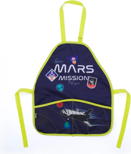 Lehká a odolná zástěra Space je skvělým pomocníkem pro školní výtvarnou výchovu i domácí tvoření. Díky nastavitelnému zapínání okolo krku a vázání v pase pohodlně padne a spolehlivě ochrání oblečení před barvami, lepidlem a dalšími nečistotami. Materiál z 100% polyesteru se snadno čistí a rychle schne.