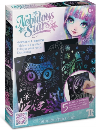 Poznejte Nebulous Stars s tímto úžasným setem na malování a škrábání s hvězdným jednorožcem a dalšími kouzelnými bytostmi. Očarujte se jejich krásou a prozkoumejte kouzelný svět kreativní zábavy!