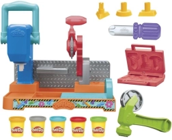 Objevte zábavnou sadu Play-Doh pro malé stavitele! Tato barevná dílna nabízí pohyblivou pilu, ikony nástrojů a formičky pro tvorbu bloků, trojúhelníků a ozubených koleček. Děti mohou použít posuvník k tvarování a s kladivem či šroubovákem vytvářet jedinečné výtvory.