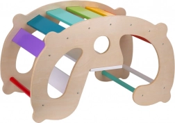 Montessori houpačka 2 v 1 kombinuje přitažlivý design s funkčností. Díky své multifunkčnosti u dětí podporuje obratnost a koordinaci pohybu, což je klíčové pro jejich vývoj.