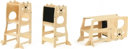 Učící věž Medvídek 3 v 1 nabízí víceúčelové využití, které dětem umožní zlepšovat své motorické dovednosti. Pomocí této věže mohou děti získat nezávislost při různorodých činnostech. Veselý design a robustní konstrukce z FSC® certifikovaného dřeva zaručuje nejen estetickou přitažlivost, ale také ekologicky odpovědný výběr materiálů.