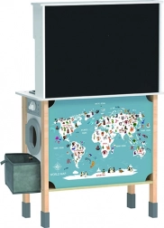 - Zadní strana obsahuje černou tabuli na kreativní kreslení nebo psaní receptů.