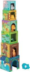 Tato sada 6 kostek nabízí každé dítěti možnost objevit exotická zvířátka z dalekých krajin. Díky jejich skladnosti a vybranému materiálu se zvířátka stávají ideálními společníky na cestách a při koupání (pozor, karton nesmí přijít do styku s vodou!).
