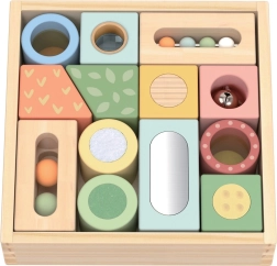 Objevte kouzlo těchto smyslových kostek navržených tak, aby rozvíjely dětskou zvídavost a představivost. Každá kostka je zhotovena z kvalitního dřeva s certifikací FSC® zajišťujícího ekologickou odpovědnost produktu. Díky různorodosti materiálů a textur se děti naučí rozpoznávat a odlišovat více prvků v jejich prostředí.