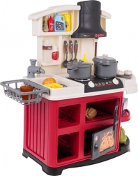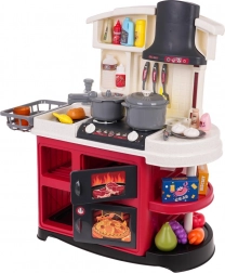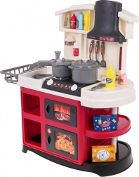 Součástí je také funkční kohoutek s tekoucí vodou, aby si děti mohly „umýt“ nádobí jako v opravdové kuchyni. Nechybí otevírací trouba, otevírací gril, mnoho poliček na uložení potravin a bohaté příslušenství včetně hrnců, pánví, náčiní a maket potravin.