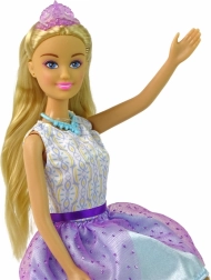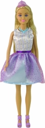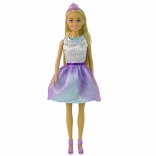 Objevte půvab panenky Anlily v pohádkovém stylu princezny. Její bohaté, jemně vlnité blond vlasy přímo vybízejí k tvorbě nových účesů. Šaty s bílým živůtkem a fialovo‑modrou sukní doplňuje třpytivá korunka, náhrdelník a vysoké střevíčky – vše perfektně sladěné pro královský vzhled.