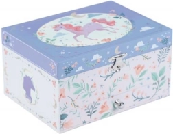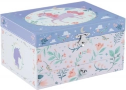 Šperkovnice s hrací skříňkou je perfektním dárkem pro děti, které mají rády kouzelné a originální doplňky. Po otevření skříňky se rozezní melodie a s ní se roztáčí nádherný jednorožec.