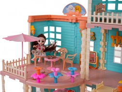 V sadě najdete kompletní výbavu včetně 3 panenek s dlouhými vlásky vhodnými k česání, nábytku a venkovních doplňků jako je houpačka, slunečník a dokonce i stůl na ping‑pong. Domeček je vyroben z kvalitního plastu v živých barvách, které zaujmou na první pohled.
