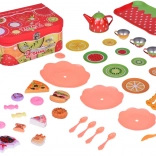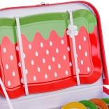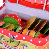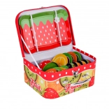 Celý set je uložen v pevném kufříku s ovocným motivem. Děti si snadno uklidí svou výbavu a vezmou čajový servis kamkoli s sebou.