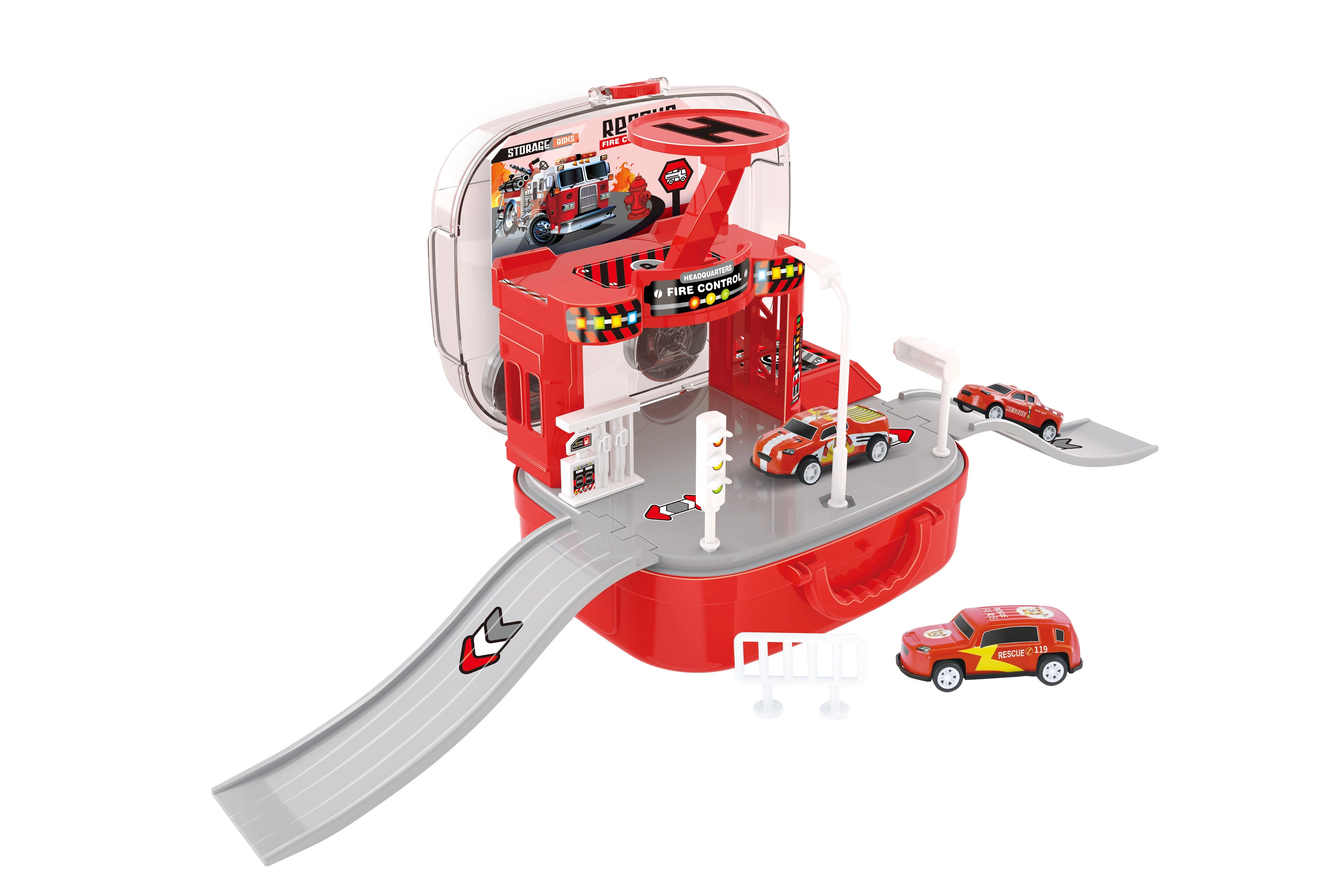 Tato promyšlená hasičská stanice v kufříku potěší malé milovníky záchranářů. Děti si mohou vytvářet vlastní zásahy, přesouvat vozidla mezi patry pomocí manuálního výtahu a nasazovat vrtulník k rychlým misím. Díky praktickému kufříku se celá stanice po hře jednoduše zavře a přenese.