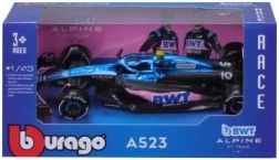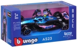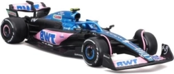 Model Bburago 1:43 přináší realistické ztvárnění monopostu ALPINE A523 v oficiálním modro-růžovém zbarvení BWT. Díky kvalitnímu kovovému tělu a přesným potiskům působí věrně a atraktivně v každé sbírce.