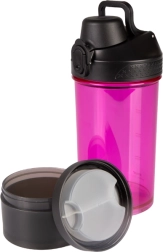Praktický a stylový fialový šejkr z odolného tritanu o objemu 530 ml se zásobníkem je ideální pro sport a každodenní použití. Nabízí bezpečné použití v myčce, odolnost vůči teplotám od -10 °C do +96 °C a lehký, přitom pevný materiál vhodný pro proteinové nápoje i smoothie.