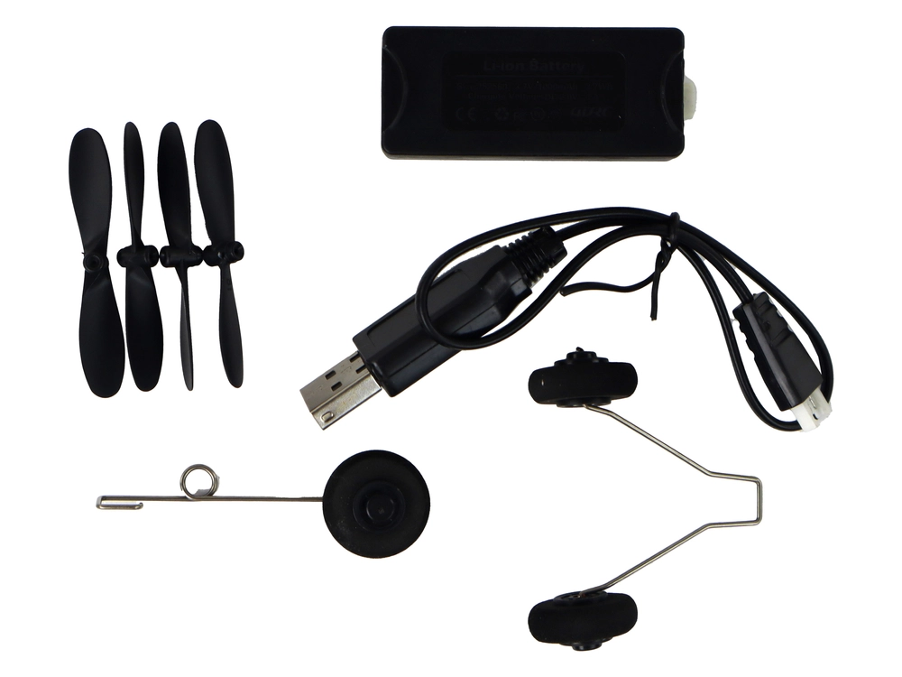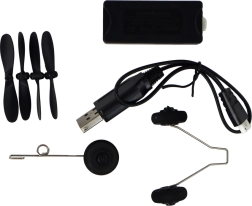 Součástí balení jsou také čtyři vyměnitelné vrtule a kabel pro nabíjení baterií.