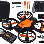 Ovládání je jednoduché: pomocí dálkového ovladače zvládnete let nahoru, dolů i do stran. K dispozici je automatický vzlet do cca 1 metru, jemné dolaďování (trim) i autopilot pro pohodové zvládnutí manévrů. Dron je napájen akumulátorem a celý set uložíte do praktického pouzdra pro snadné přenášení.