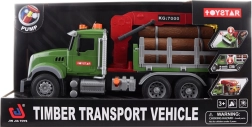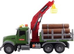 Velký přepravník dřeva s funkčním jeřábem, světly a zvuky potěší malé řidiče od 3 let. Auto na setrvačník má pogumovaná kola pro tichou jízdu, vyjímatelný náklad a tři tlačítka se zvuky – troubení a motor, pípání při couvání a startování. Součástí jsou 3× AG13 baterie.