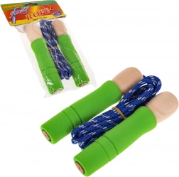 Dětská skákací pomůcka s dřevěnými rukojeťmi a protiskluzovými gumovými koncovkami je ideální pro děti od 5 let. Poskytuje skvělou příležitost pro aktivní trávení času na čerstvém vzduchu.