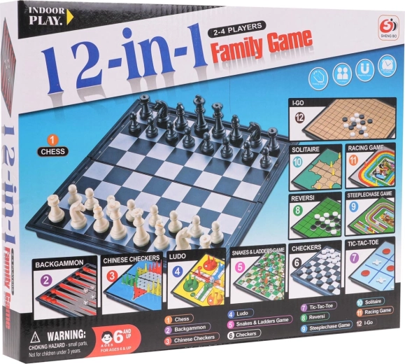 Tato bohatě vybavená sada přináší rovnou dvanáct oblíbených her v jednom praktickém balení. Skvěle se hodí na rodinné večery, na cesty i na prázdniny – děti i dospělí si přijdou na své a procvičí logické myšlení, strategii i trpělivost.