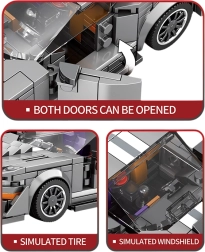 Model nabízí ručně otevírané dveře, věrné proporce skutečného sportovního vozu a možnost personalizace vzhledu pomocí samolepek. V balení nechybí obrázkový návod, díky kterému je stavba přehledná a krok za krokem zvládnutelná.