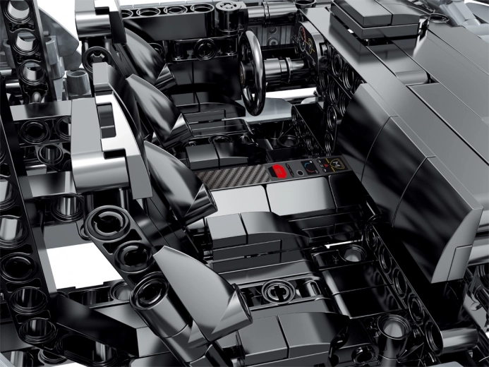 Kabina s detailním kokpitem, pohyblivým volantem a nastavitelnými prvky přináší autentičtější zážitek ze stavby i hry.