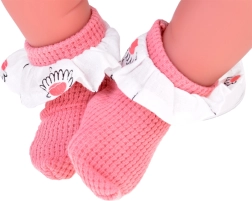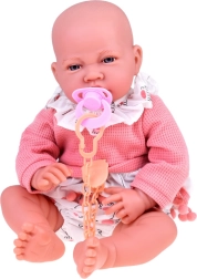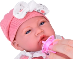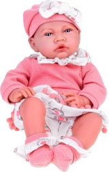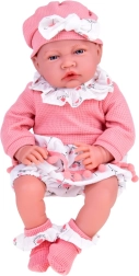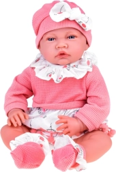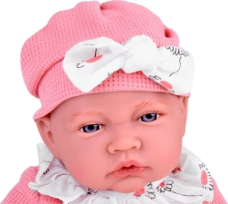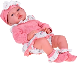 Roztomilé interaktivní miminko o výšce 45 cm potěší každé dítě. Má měkké tělíčko, pohyblivé končetiny z měkké gumy, realistické rysy a velké oči s řasami. O zábavu se postará 12 zvukových funkcí, růžový smoček na klipu a hebký růžový komplet s tunikou, kalhotkami, čepičkou a ponožkami.