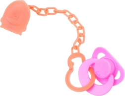 Stylový růžový set s volánky a praktický smoček s řetízkem/klipem, který jednoduše připnete k oblečku, aby se neztratil.