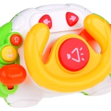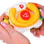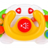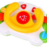 Tento barevný dětský volant podporuje fantazii, smyslový rozvoj a koordinaci rukou. Děti mohou otáčet volantem doprava i doleva, používat klíček k „nastartování“ motoru a zapínat směrovky se skutečnými zvuky. Veselé melodie a světelné efekty udrží pozornost malých řidičů doma i na cestách.