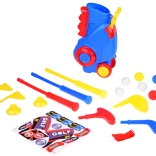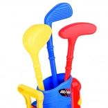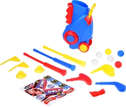 Sada obsahuje 3 barevné hole s různými hlavami pro snazší údery, 6 míčků, 2 podstavce (tee), 2 jamky s vlaječkami a stojan/bag. Děti si procvičí cílení, odhad síly a soustředění, zatímco si užívají aktivní zábavu v interiéru i exteriéru.